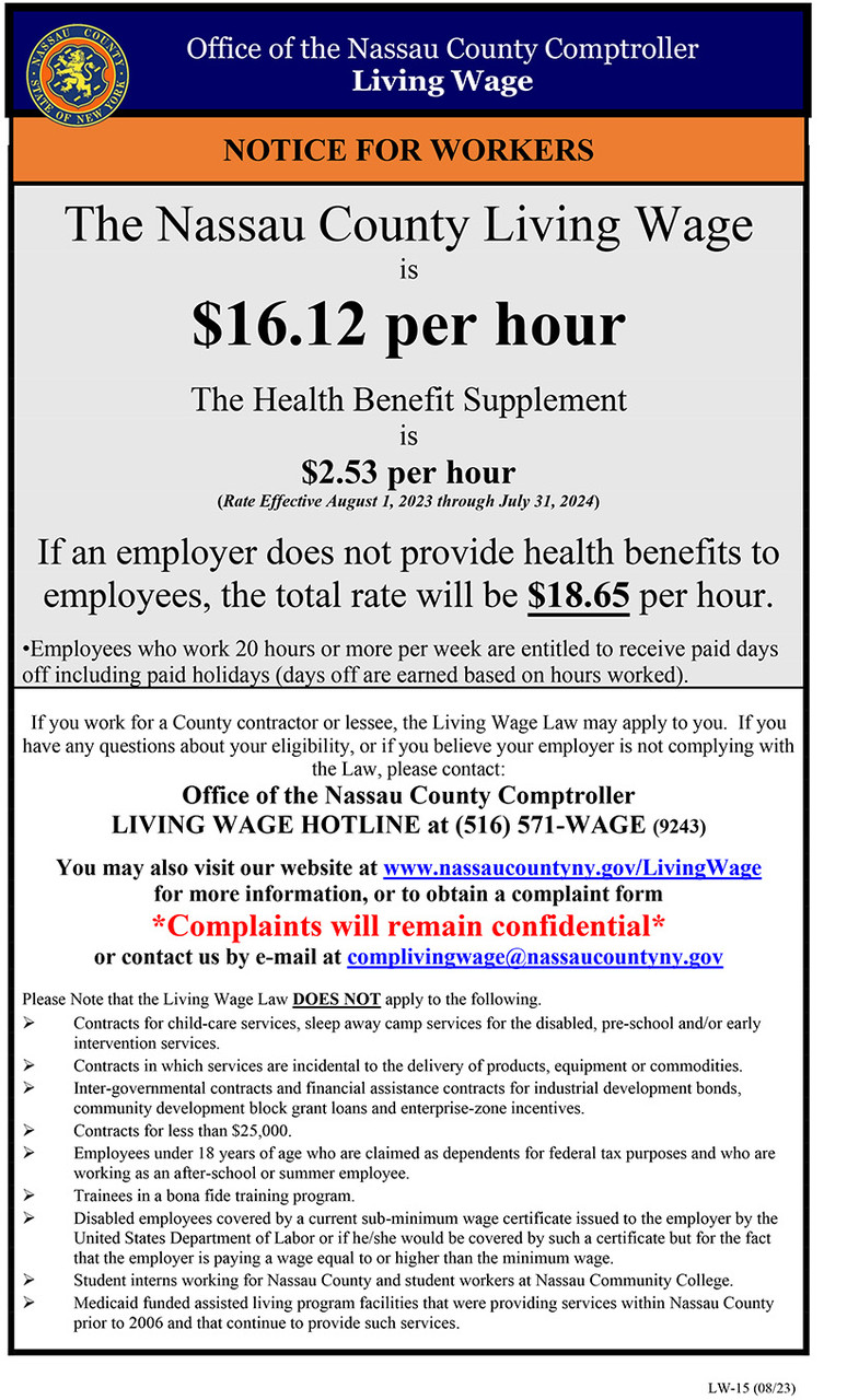 Nassau, New York Minimum Wage Supplement Labor Law Compliance Center